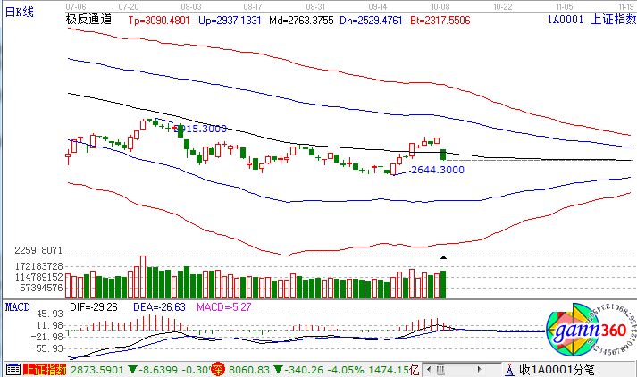 滬指跌3.72%,報收2716點;深成指跌4.05%,報收8060點;創(chuàng)業(yè)板跌4.09%,報收1353點。從盤面上看,酒店餐飲、集成電路、芯片、超級品牌、白酒、半導(dǎo)體等板塊領(lǐng)跌。滬股通凈流出73億,深股通凈流出23億。相應(yīng)的極反通道指標(biāo)的支撐壓力提示,如下圖所示: