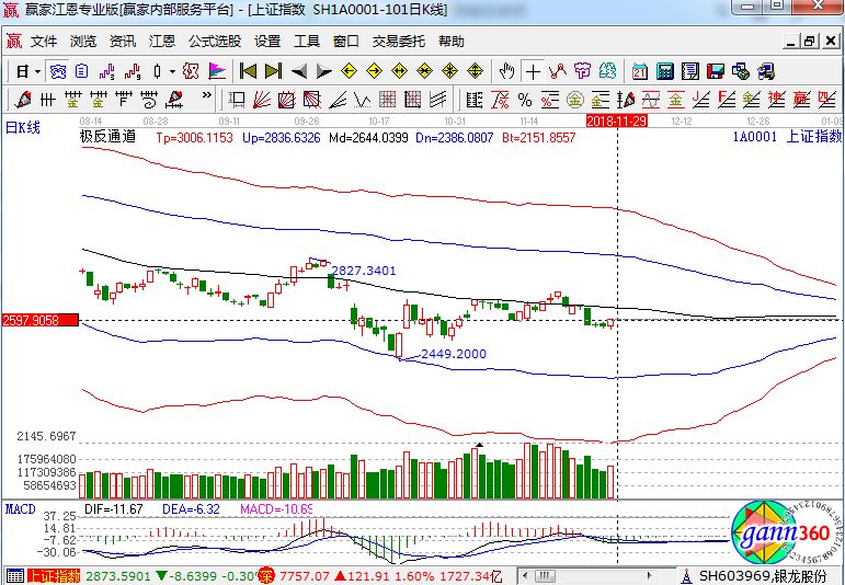 滬指漲1.05%,報收2601點;深成指漲1.60%,報收7757點;創(chuàng)業(yè)板漲1.95%,報收1341點。盤面上看,通信服務(wù)、海南、知識產(chǎn)權(quán)保護、證券、手游、文化傳媒、數(shù)字中國等板塊漲幅居前;園區(qū)開發(fā)、天津自貿(mào)區(qū)、獨角獸概念、創(chuàng)投、水泥等板塊跌幅居前。滬股通凈流入20億,深股通凈流入8億。相應(yīng)的極反通道指標的支撐壓力提示,如下圖所示: