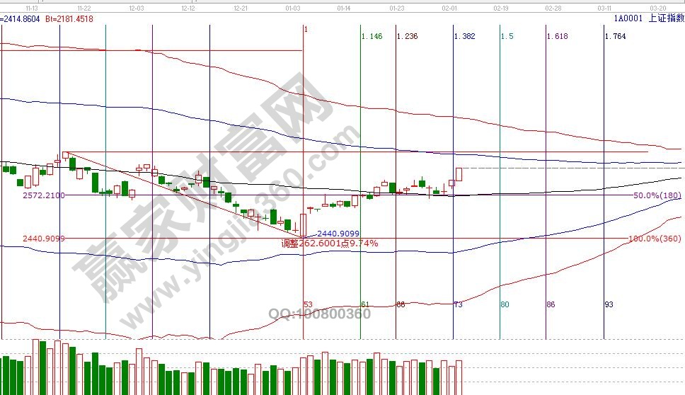 大盤日K線從黑色生命線2570點(diǎn)震蕩向藍(lán)色上軌線2690點(diǎn)靠近,自2440點(diǎn)反彈已上攻21個(gè)交易日,根據(jù)江恩買賣12法則第4條根據(jù)三星期上升或下跌買賣,指數(shù)越靠近藍(lán)色上軌線反壓力越大??臻g點(diǎn)位上,轉(zhuǎn)折趨勢線、江恩波段百分比工具顯示,2月12號支撐是2634點(diǎn),壓力是2672點(diǎn),時(shí)間上2月11、12號是時(shí)間窗口。操作策略,大盤日線生命線上安全區(qū)域看多做多,整體倉位保持在4-5成。