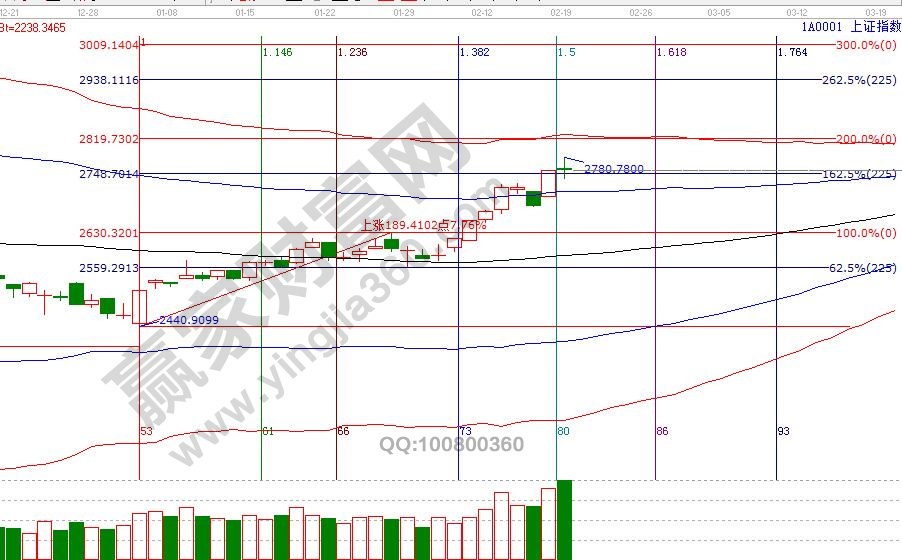 大盤在極反通道藍(lán)色上軌線與紅色外軌線構(gòu)造的超強(qiáng)通道內(nèi)運(yùn)行,此區(qū)域代表市場(chǎng)熱度較強(qiáng),板塊、個(gè)股均有機(jī)會(huì)輪番表現(xiàn),享受市場(chǎng)瘋狂的同時(shí),但要小心瘋狂背后不斷積累的風(fēng)險(xiǎn),目前工具還未出現(xiàn)警示信號(hào),按規(guī)則穩(wěn)健者關(guān)注15分鐘生命線得失,激進(jìn)者關(guān)注60分鐘生命線得失;空間點(diǎn)位上,江恩百分比、江恩價(jià)格四方形提示,2730、2720是支撐,2765、2778為壓力,時(shí)間窗口是28號(hào)。操作策略,大盤日K線從強(qiáng)勢(shì)通道進(jìn)入超強(qiáng)通道,個(gè)股波動(dòng)空間增大,分批高拋藍(lán)色上軌線或紅色外軌線壓力個(gè)股,倉(cāng)位切換至生命線附近有量能配合的個(gè)股,整體倉(cāng)位保持在5-6成。