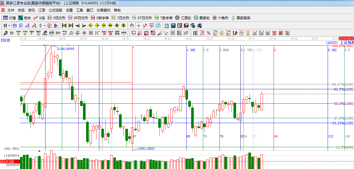 江恩看盤綜述:依據(jù)贏家江恩技術(shù)工具分析得出:周二指數(shù)低開高走,放量突破2060點(diǎn)阻力,指數(shù)下一目標(biāo)位是2082-2089區(qū)間,是預(yù)計短期指數(shù)以高位震蕩為主,日線下一時間窗口是7月28日。操作上,繼續(xù)關(guān)注低位藍(lán)籌股以及受益微刺激的高鐵、核電、特高壓、新能源等概念。