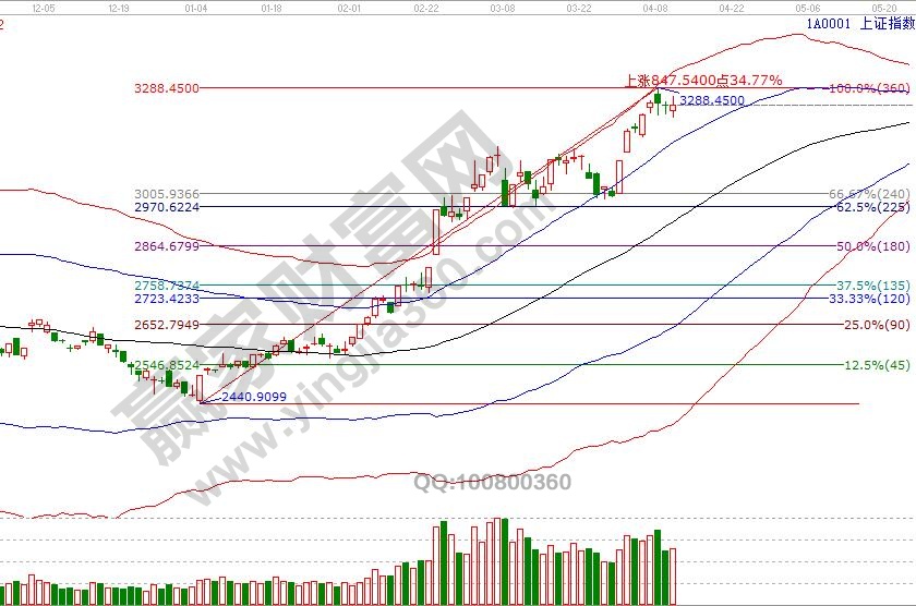 大盤日K線保持在極反通道藍(lán)色上軌與紅色外軌線構(gòu)成的超強(qiáng)通道內(nèi)運(yùn)行,提前公布8-15號(hào)為贏家江恩系統(tǒng)時(shí)間工具提示的時(shí)間窗口,預(yù)判此時(shí)間段指數(shù)走勢(shì)會(huì)反復(fù),當(dāng)前走勢(shì)同預(yù)期相符,市場(chǎng)整體延續(xù)上攻趨勢(shì),待休整結(jié)束不破藍(lán)色上軌線前提下觀察是否有再創(chuàng)新高動(dòng)作;空間方面,波段百分比延伸線、江恩價(jià)格四方形分析得出,短期壓力是3261、3283點(diǎn),短期支撐3228、3196點(diǎn)。操作策略,日線超強(qiáng)通道運(yùn)行,穩(wěn)健者倉(cāng)位保持在5成,激進(jìn)者倉(cāng)位保持在7成,靠近紅色外軌線持倉(cāng)遵守提高止賺位分批獲利。