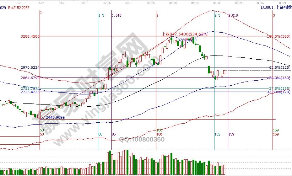 大盤自5月第一個江恩時間窗口8號、9號,與江恩價格形成時價四方信號,按預(yù)判短線反彈已展開一周,同樣參與者也收到利潤回報。通過贏家江恩分析體系判斷,短線動作還能延續(xù),隨著時間5月第二個時間窗口17號臨近,需要關(guān)注波段百分比延伸線2倍零度位2966點反壓力,此線附近會有反復(fù),獲利豐厚者可以選擇高拋部分籌碼,待確認反彈延續(xù)性后再度參與。首次關(guān)注贏家江恩的學(xué)員可查看歷史,4月22號盤后大勢分析提醒倉位降至3成,4月25號低風(fēng)險者可以空倉休息,5月8號開始再度進場,規(guī)避風(fēng)險參與反彈,皆是通過贏家江恩體投資系判斷。16號盤中支撐是135度2911點,盤中壓力270度2961點,本周五17號是5月第二個時間窗口。操作策略,指數(shù)擊破黑色生命線進入弱勢區(qū)域,目前處于短線反彈周期,高風(fēng)險者倉位3-4成,低風(fēng)險者等待中期參考位。