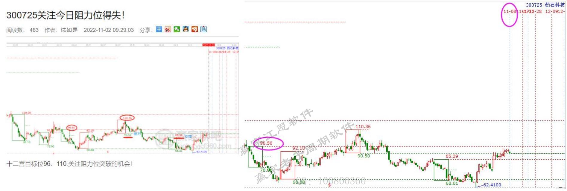 藥石科技,今日已經(jīng)到達(dá)預(yù)測(cè)的第一目標(biāo)位。時(shí)間窗+預(yù)測(cè)點(diǎn)位96.5元,工具信號(hào)止盈!短短幾天又是一個(gè)漲幅空間6%!規(guī)則很清晰:時(shí)間+支撐是關(guān)注,時(shí)間+阻力是出局。每條線互為支撐和阻力,線上支撐,線下阻力。