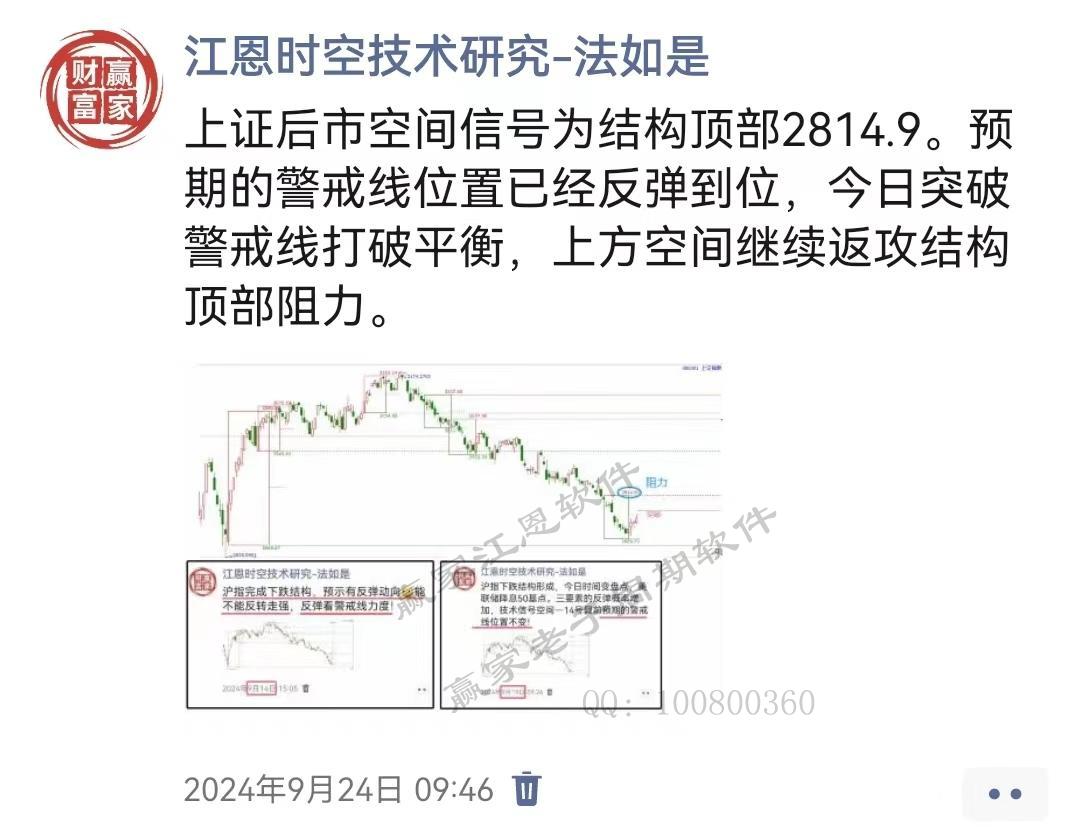 上面解讀過大的空間上已經(jīng)處于底部空間支撐狀態(tài),所以9月份給出上證指數(shù)三個(gè)贏家江恩時(shí)間上的重要變盤節(jié)點(diǎn),分別是12號(hào)、18號(hào)、20號(hào),時(shí)間是唯一的,意味著市場轉(zhuǎn)勢(shì)的確定性??臻g測市工具運(yùn)用贏家極反通道,當(dāng)時(shí)正好處于極反通道弱勢(shì)通道線支撐。時(shí)間測市工具運(yùn)用贏家時(shí)空周期時(shí)間窗,永不確認(rèn)轉(zhuǎn)勢(shì),直至?xí)r間超越平衡,這里大家可以去應(yīng)驗(yàn)一下本輪拉升的啟動(dòng)時(shí)間。空間換時(shí)間,時(shí)間轉(zhuǎn)換空間,時(shí)空互等。