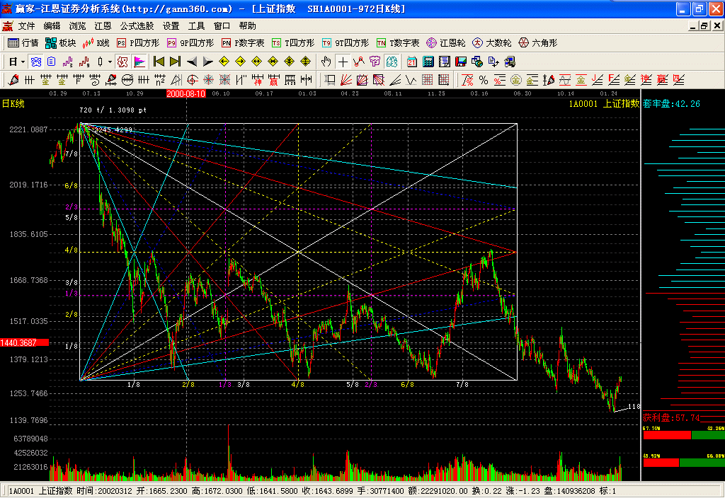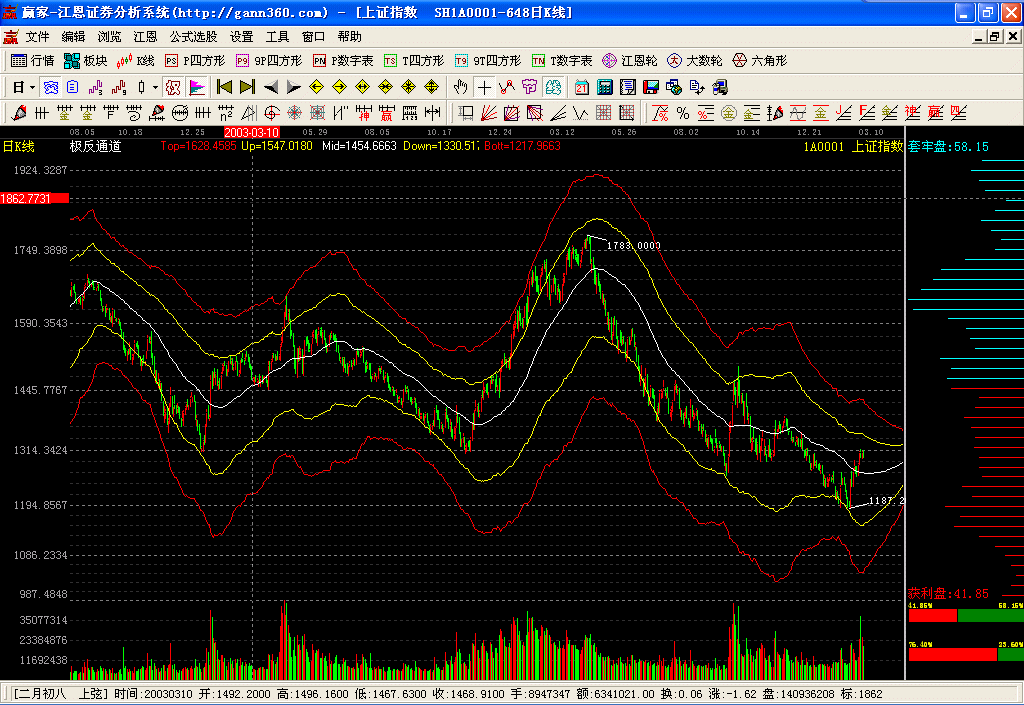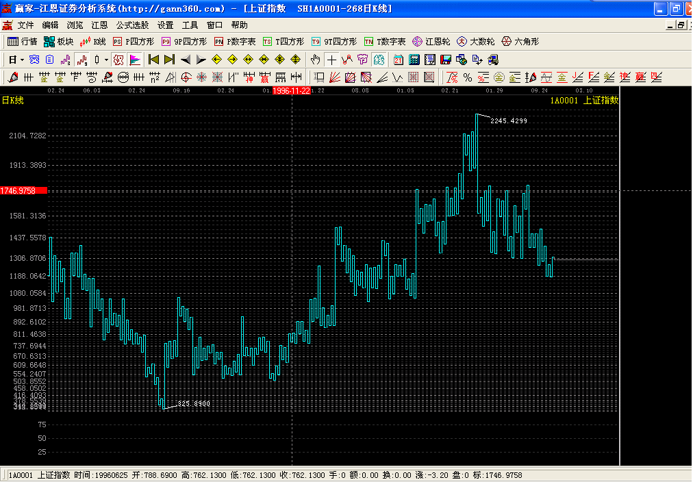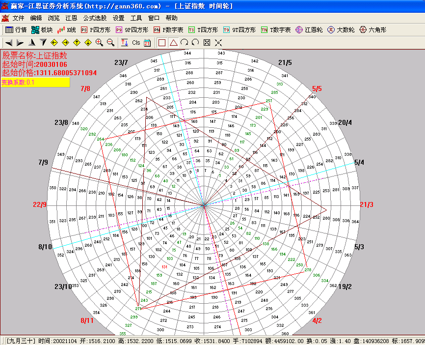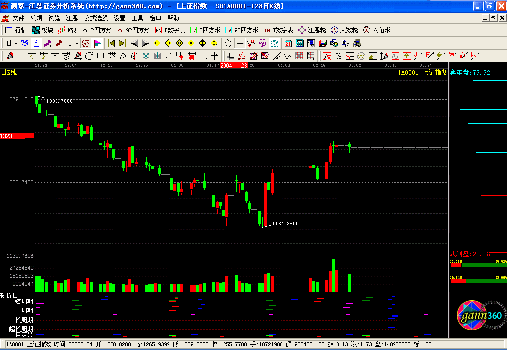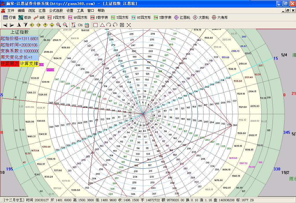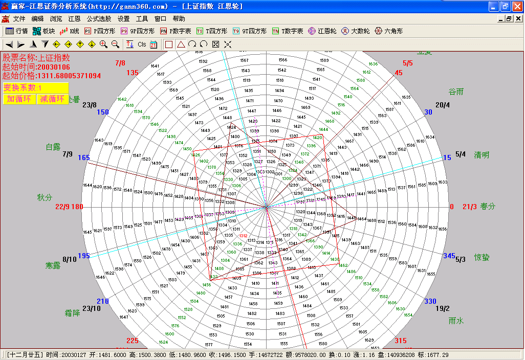 本軟件除實(shí)現(xiàn)了江恩的經(jīng)典判市工具:包括江恩輪、價格正方形、九格價格正方形、時間正方形、九格時間正方形、六角形、角度線、江恩計算器、時間及價格循環(huán)線、時間周期線、江恩價格回調(diào)帶外,增加了百分比線、百分比延伸線、黃金延伸線、黃金回調(diào)帶、黃金分割阻力支撐線、k線價格四方形、自定義時間價格計算器、黃金時間周期線、螺旋時間周期線、自定義周天江恩時間循環(huán)線、平方時間循環(huán)線、三點(diǎn)周期線、螺旋歷法時間循環(huán)線、k線時間論中論(變盤點(diǎn))、k線時間四方形(變盤點(diǎn))、時間轉(zhuǎn)折日提示、24節(jié)氣轉(zhuǎn)折日提示、神奇周期線、神奇價格線、贏家周期線、自定義時間周期線、趨勢轉(zhuǎn)折線、點(diǎn)位跟蹤轉(zhuǎn)折線。