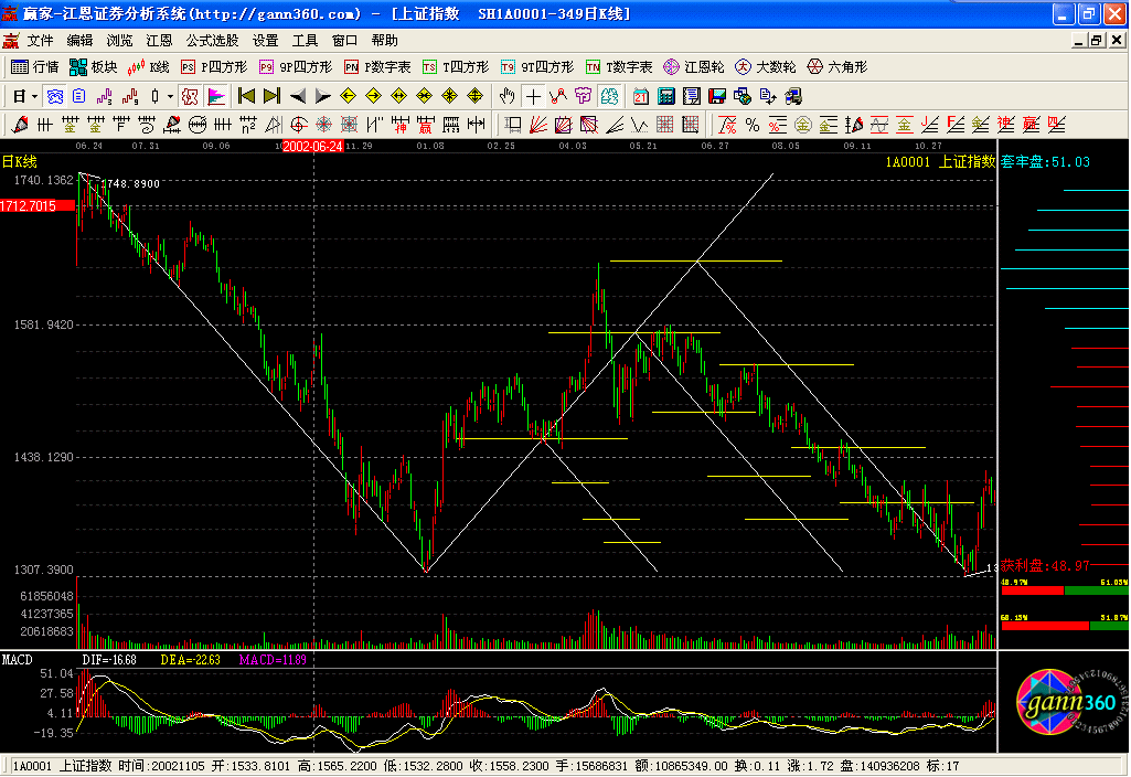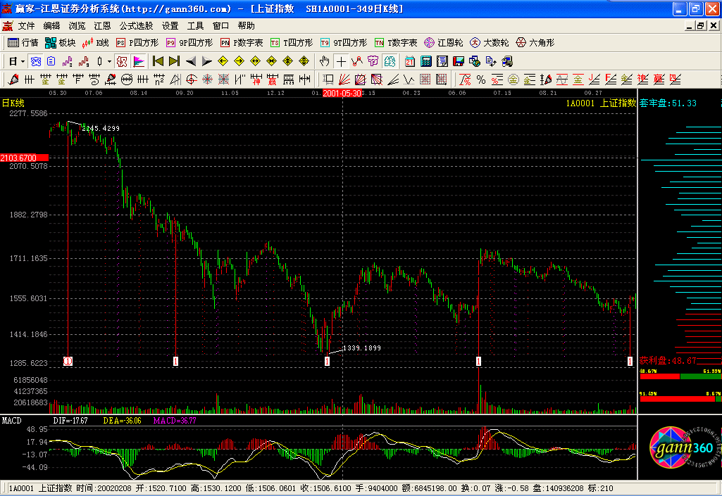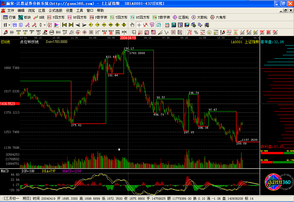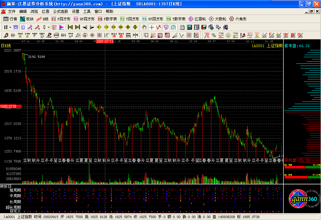 贏家江恩證券分析系統(tǒng),1999年研發(fā)問世,迄今22年,專注技術(shù)分析,專注江恩理論研究,專注散戶一整套股市盈利體系的構(gòu)建。該系統(tǒng)基于一整套的江恩理論設(shè)計研發(fā),適用于股票、期貨、外匯等市場,其分析方法獨(dú)特、分析指標(biāo)獨(dú)創(chuàng),一切遵從自然法則。軟件除實(shí)現(xiàn)了江恩經(jīng)典測市工具,如江恩輪、正方形、六角形、角度線、江恩計算器、時間及價格循環(huán)線等之外,還依據(jù)贏家團(tuán)隊(duì)多年的研究開發(fā)了許多極具實(shí)戰(zhàn)價值的工具和指標(biāo),如極反通道、24節(jié)氣、轉(zhuǎn)折日提示等。