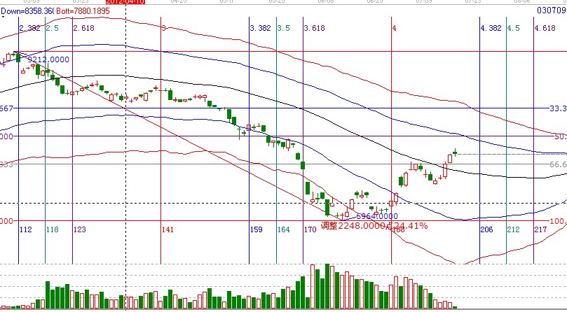 贏家江恩系統(tǒng)極反通道口決: 白線以上強勢走,白線以下難抬頭,紅黃兩條外軌線,壓力支撐顯勢頭;