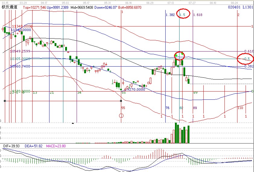 得出以下結(jié)論L期貨在2012年3月15日見高點(diǎn)11340至2012年6月8日間低點(diǎn)9270【55】個(gè)交易時(shí)間下跌了2070點(diǎn)。那么他的未來(lái)2分為價(jià)格在哪里呢???時(shí)間在哪里呢??