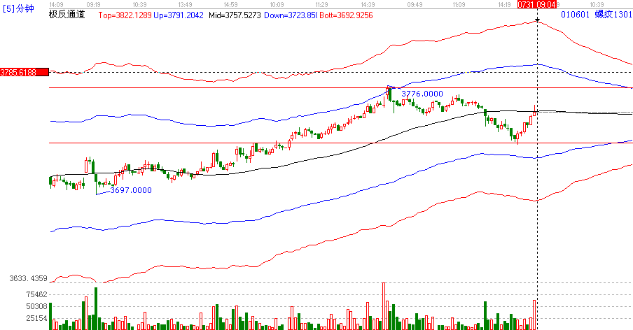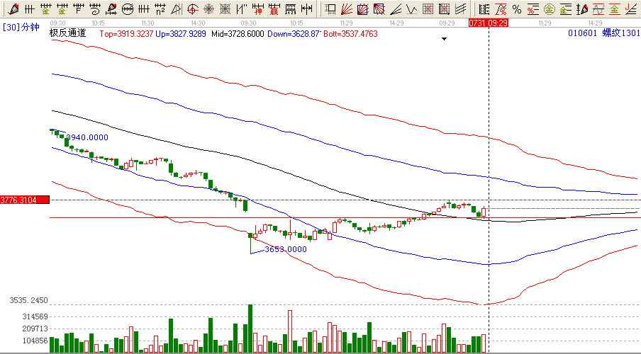 2012.07.31日螺紋分析:關(guān)注今日的高點(diǎn)3776點(diǎn)壓力【5分跟15分極反通道上軌的壓力點(diǎn)位3792點(diǎn)下方在3736的支持力度3730【極反通道30分15分的共振點(diǎn)位置】高空低多,震蕩格局。
