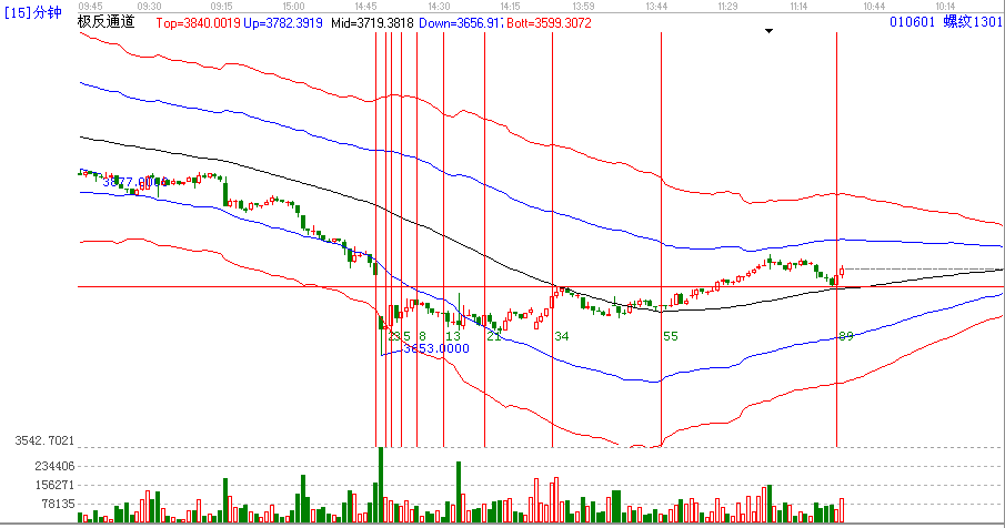 螺紋跌至新低,極反通道弱勢(shì)紅色外軌,然后震蕩周強(qiáng),在15分周期的55根k線回踩極反通道生命線,按照極反通道買(mǎi)賣法則,突破極反通道生命線然后回踩生命線的位置為最佳買(mǎi)點(diǎn),第一目標(biāo)極反通道上軌今日開(kāi)盤(pán)最高點(diǎn)位跟5分鐘的極反通道上軌位置共振賣點(diǎn),然后回落,跌至15分極反通道生命線的位置【這個(gè)位置是前期高點(diǎn)的位置,形成一個(gè)強(qiáng)有力的支持買(mǎi)點(diǎn),遇到時(shí)間89時(shí)間周期最后尾盤(pán)30分鐘強(qiáng)勢(shì)拉起的原因。